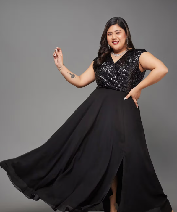 - Style: Plus-size wrap maxi dress for a flattering silhouette